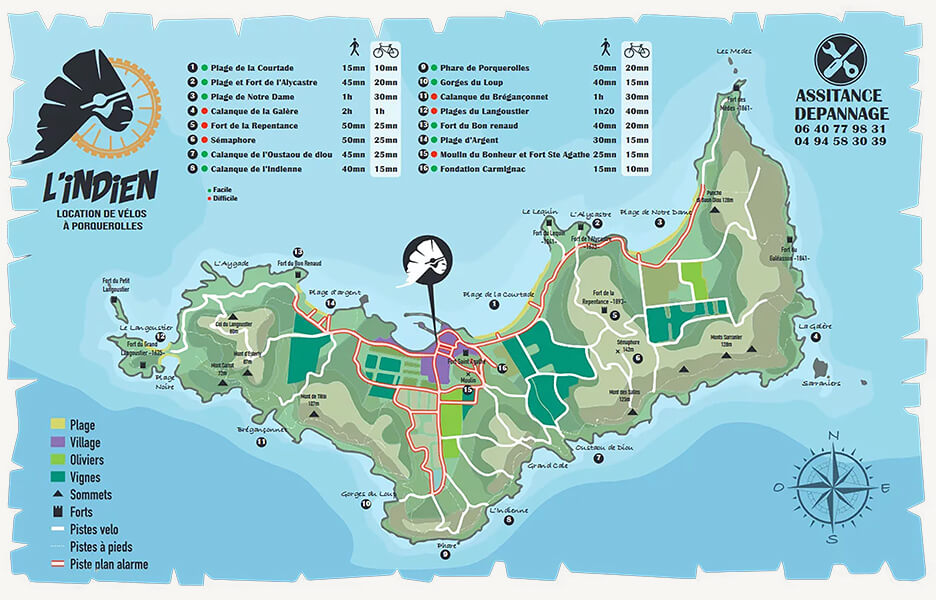 Depuis 1988, L’INDIEN et son équipe dynamique vous accueille sur Porquerolles pour vous proposer la location de vélos, vélos électriques, VTT, vélos suiveur, carrioles…